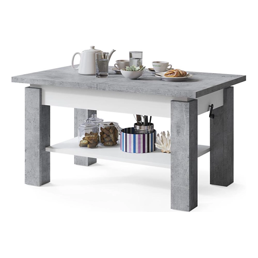 Tavolino da salotto allungabile con ripiano ADONIS 110/150 x 68 cm, grigio cemento/bianco