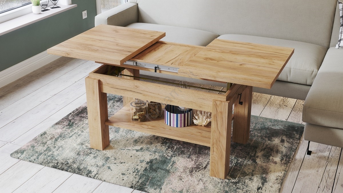 Tavolo allungabile da salotto e da pranzo con ripiano ADONIS, finitura rovere craft