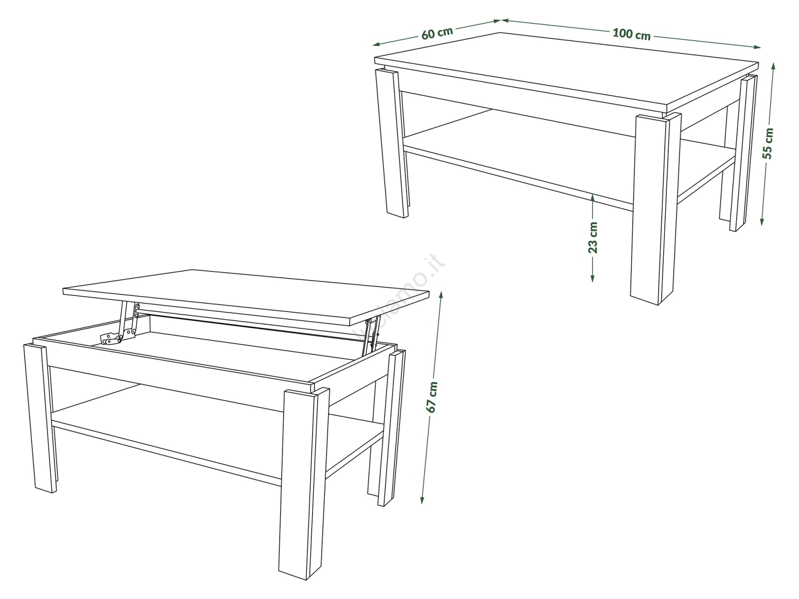 • Tavolino da salotto allungabile con piano sollevabile e ripiano ADEN rovere craft/nero