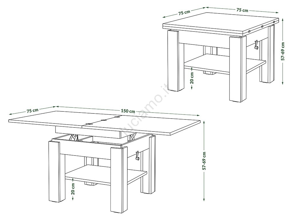 • Il piano può essere sollevato fino a 69 cm di altezza.