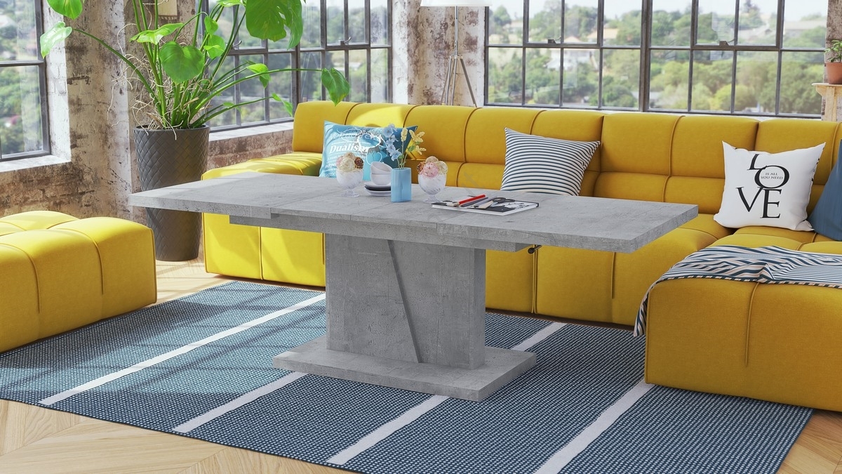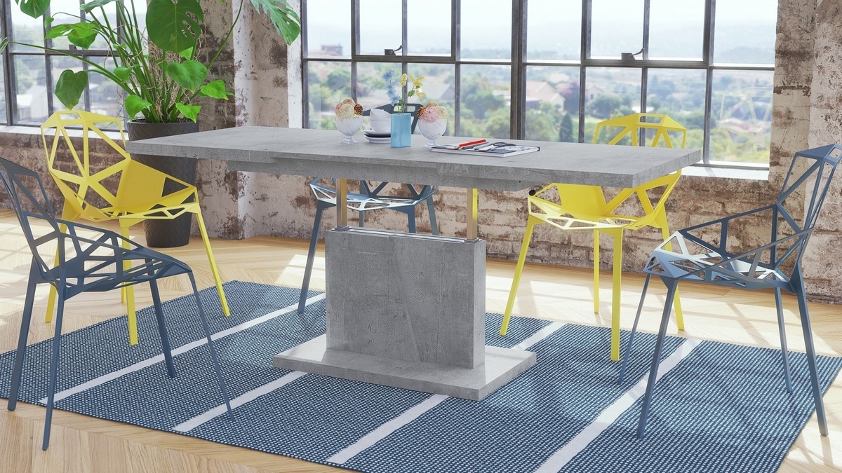 • Tavolo trasformabile da salotto/pranzo con piano sollevabile NINO effetto cemento grigio