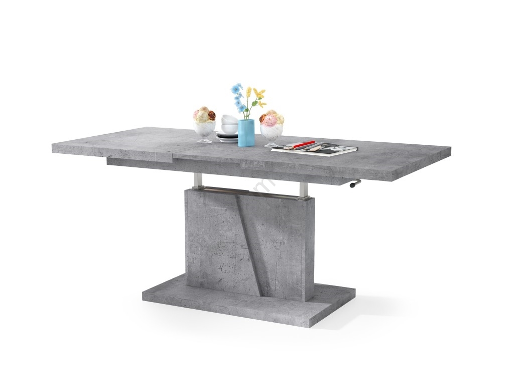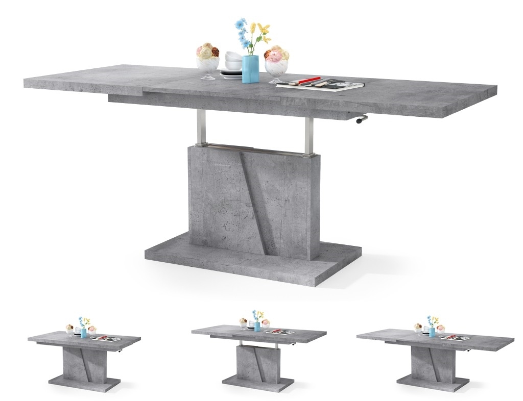 Tavolo trasformabile da salotto/pranzo con piano sollevabile NINO effetto cemento grigio