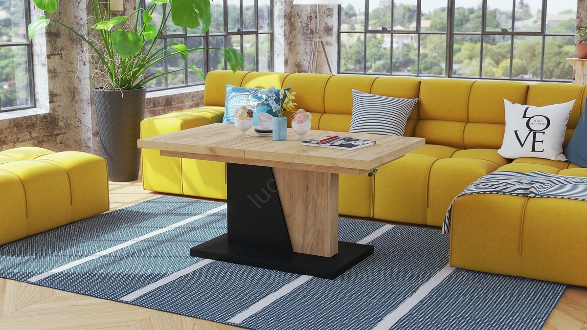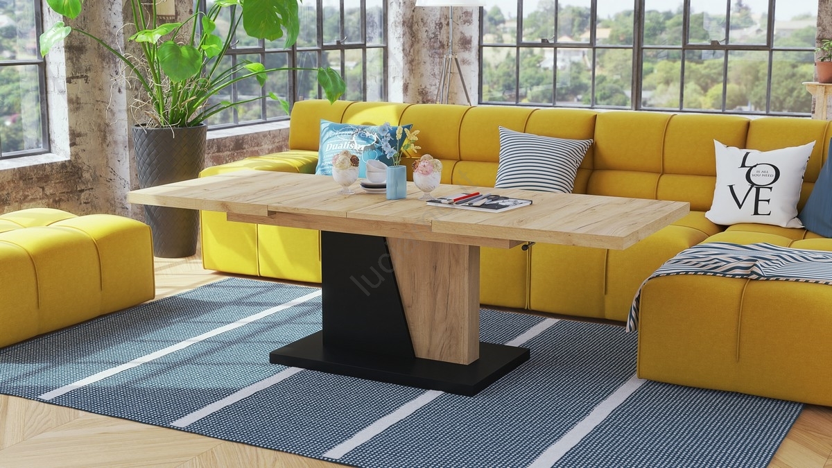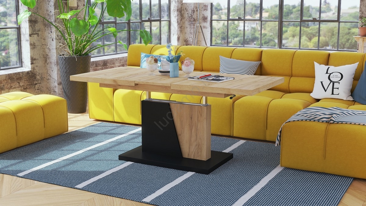 Tavolo allungabile da salotto/pranzo con piano alzabile NINO rovere craft/nero
