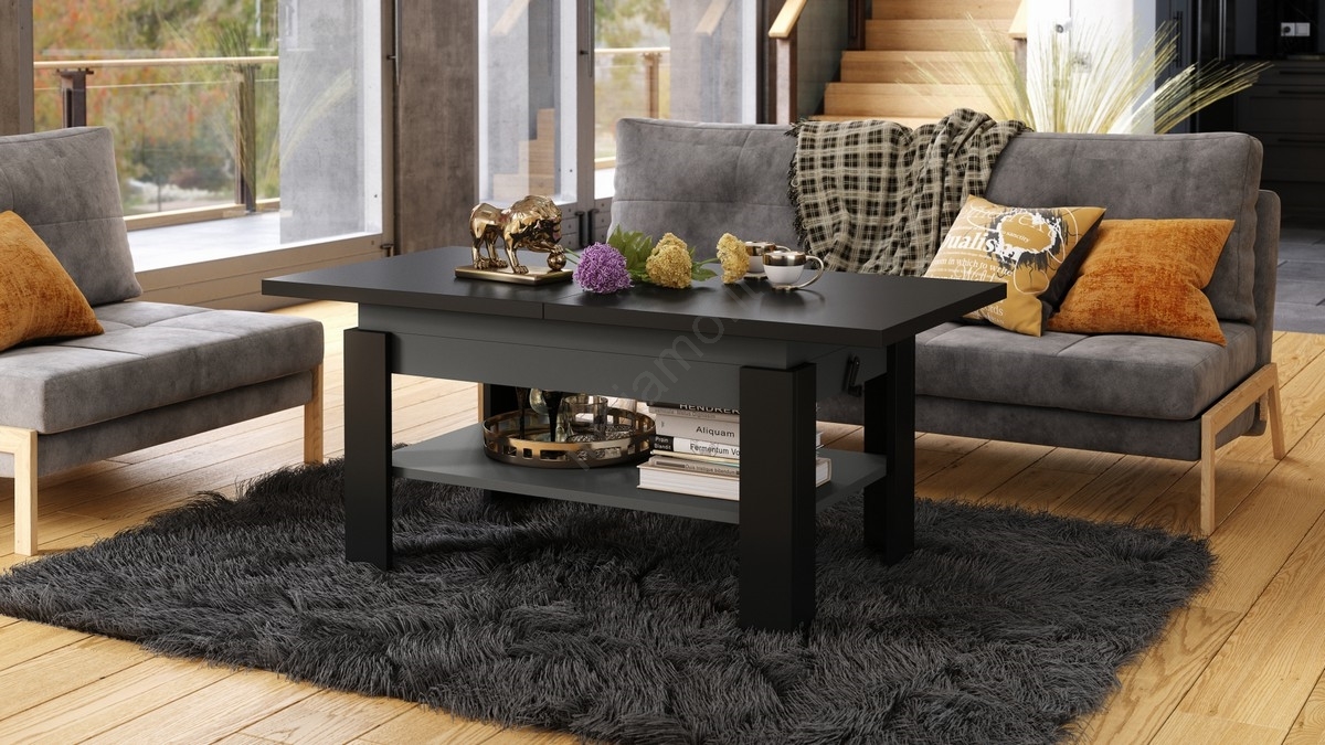 Tavolino da salotto allungabile con piano sollevabile ROY 130/170x65 cm nero/antracite