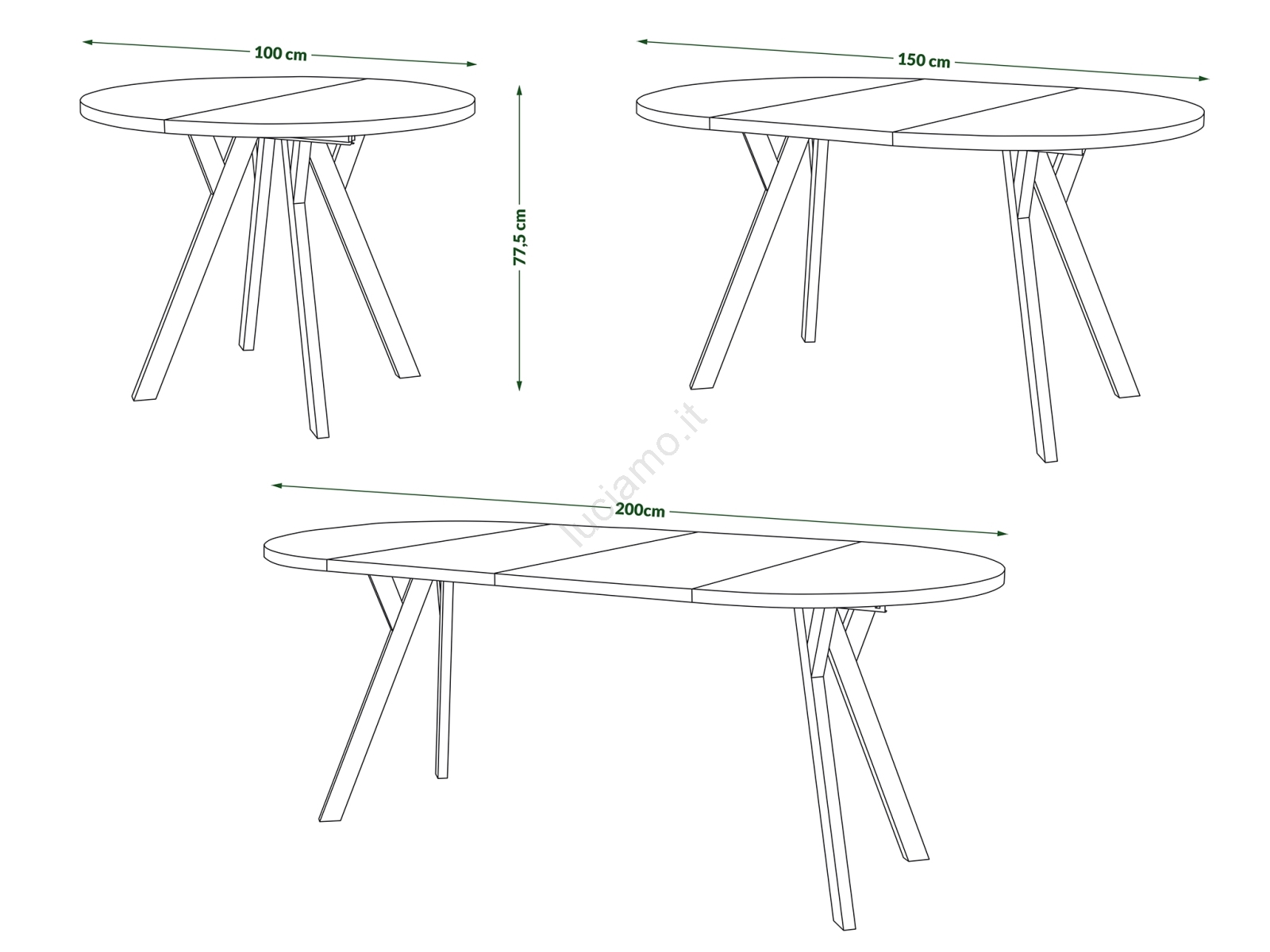 • Dimensioni del tavolo aperto: 200 x 100 cm e 150 x 100 cm.