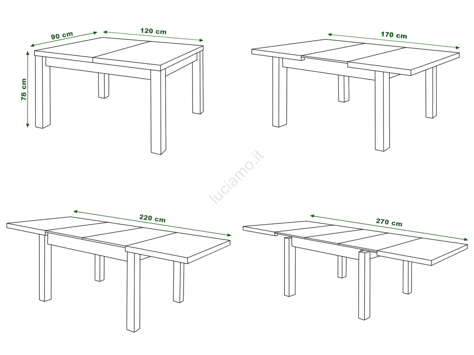 • Il piano è realizzato in truciolato rivestito con laminato di pregio e le gambe sono in legno, garantendo un utilizzo duraturo nel tempo.