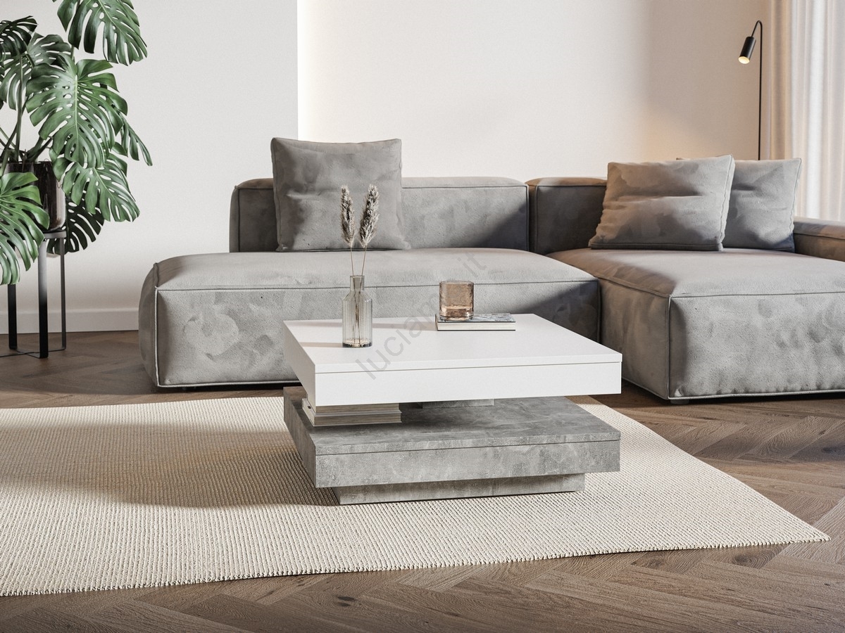 • Tavolino da salotto TIMO bianco/grigio effetto cemento
