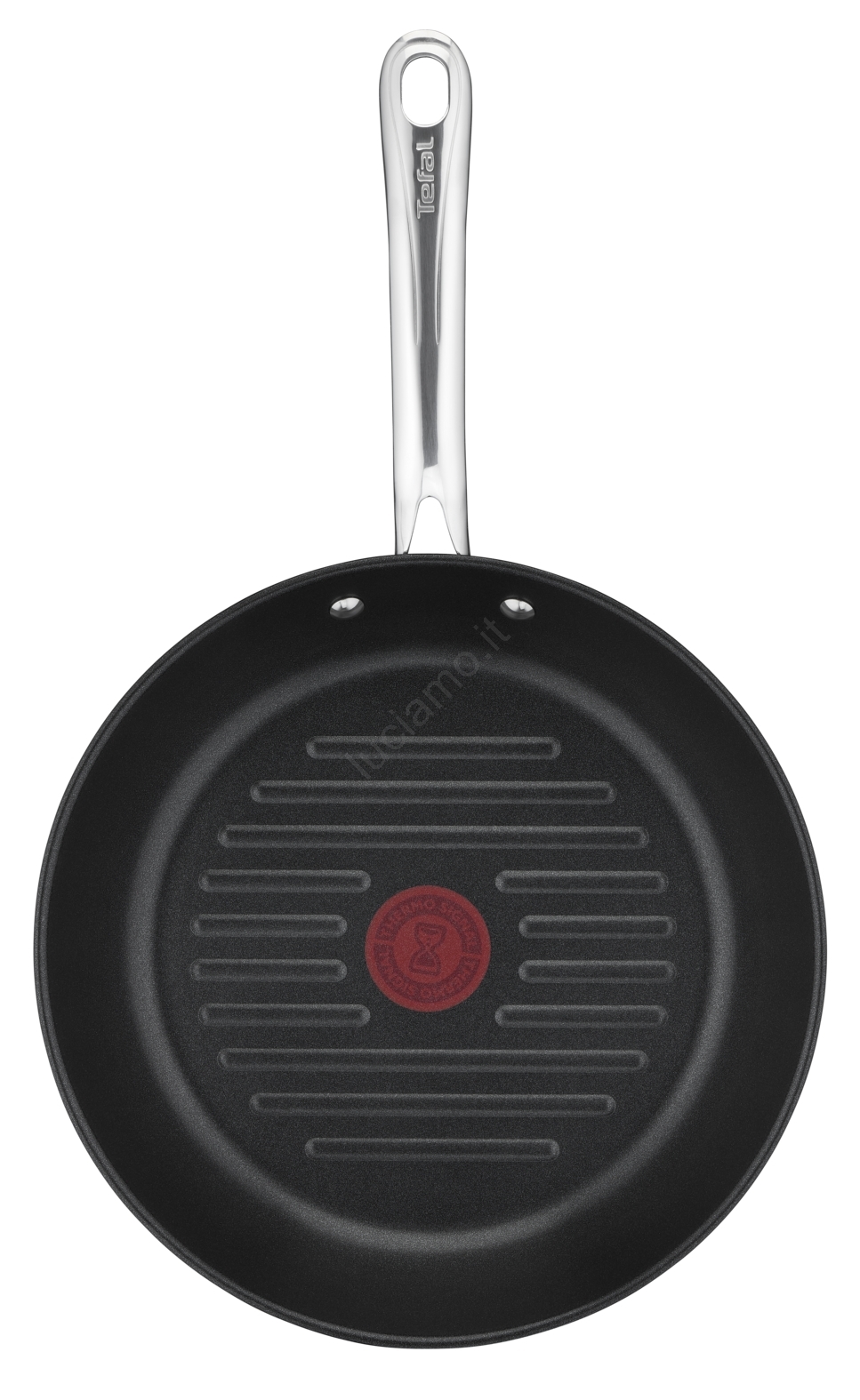 • Padella grill con rivestimento antiaderente in titanio, estremamente resistente e che permette di cucinare con pochissimi grassi.