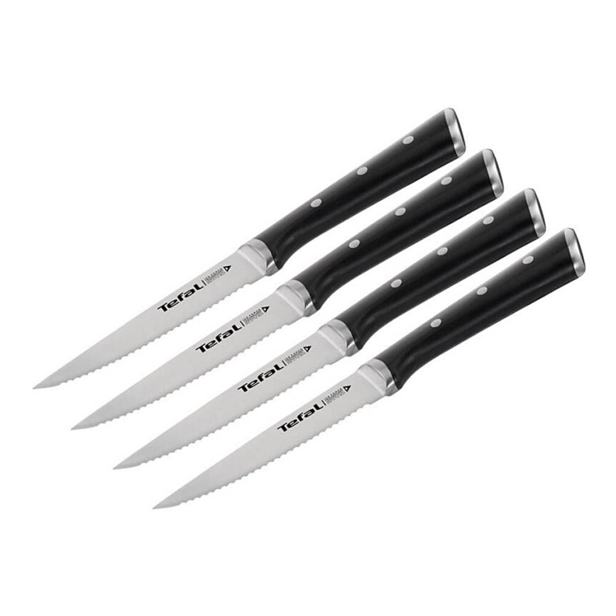 Tefal - Set da 4 coltelli da bistecca in acciaio inox ICE FORCE 11 cm cromo lucido/nero