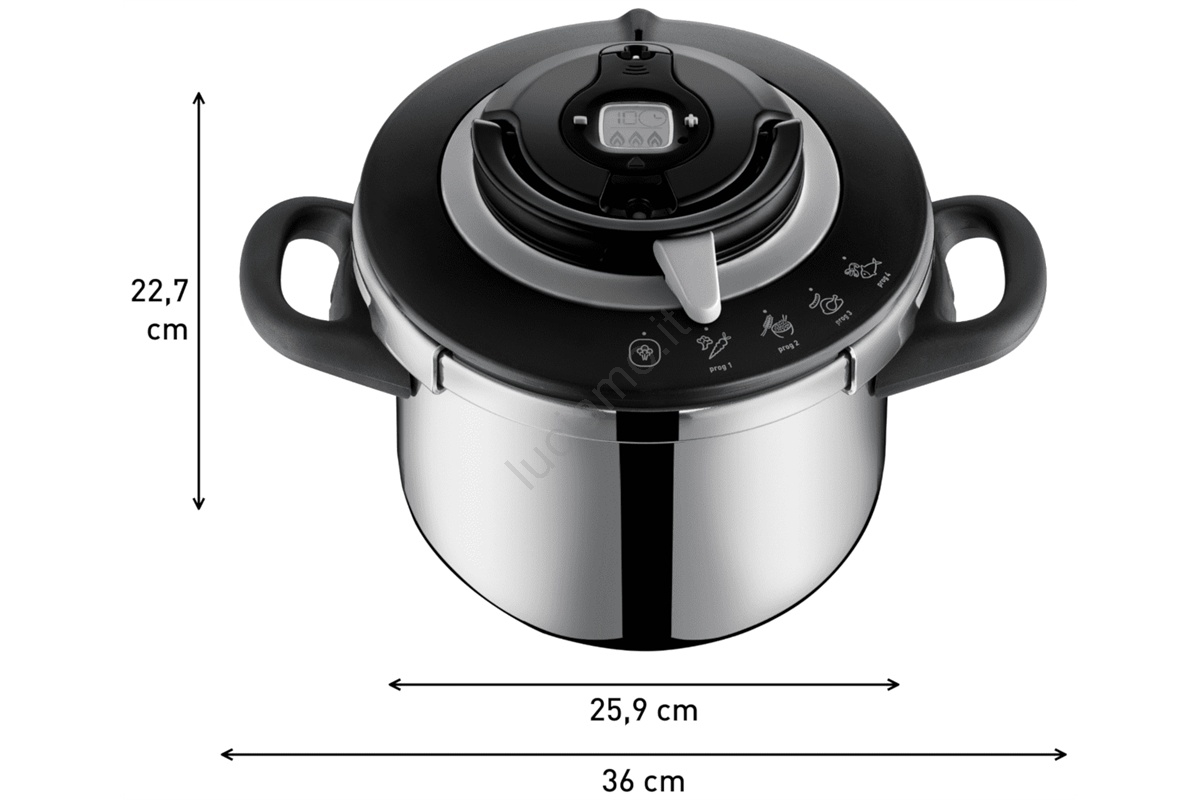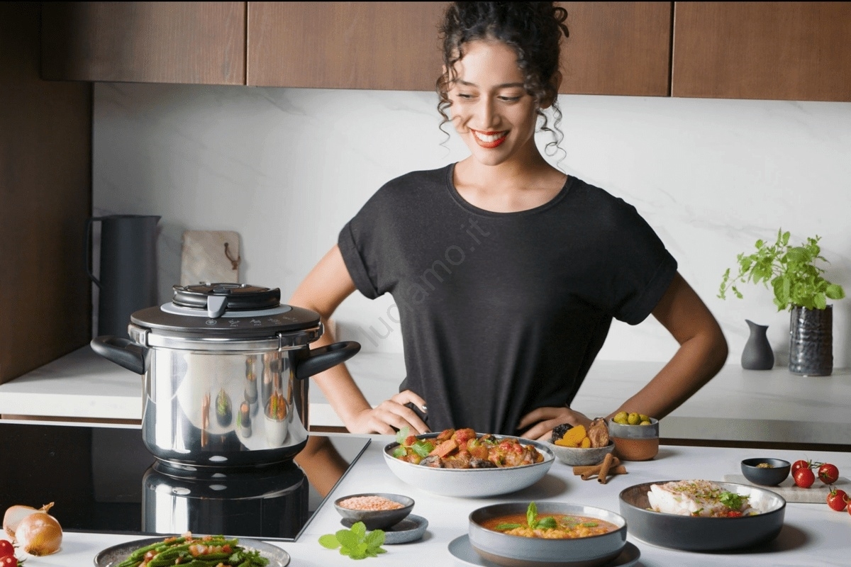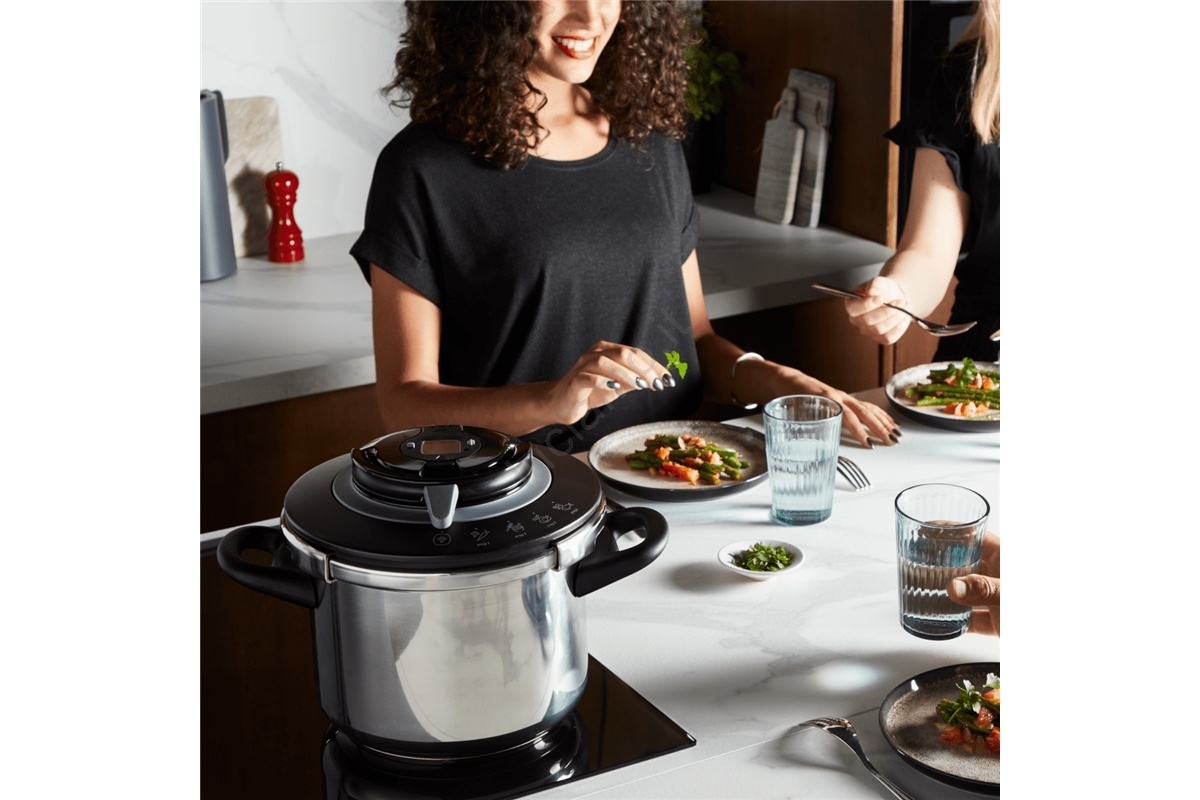 • Permette di cucinare fino a due volte più velocemente rispetto alla cottura tradizionale grazie al meccanismo a pressione.