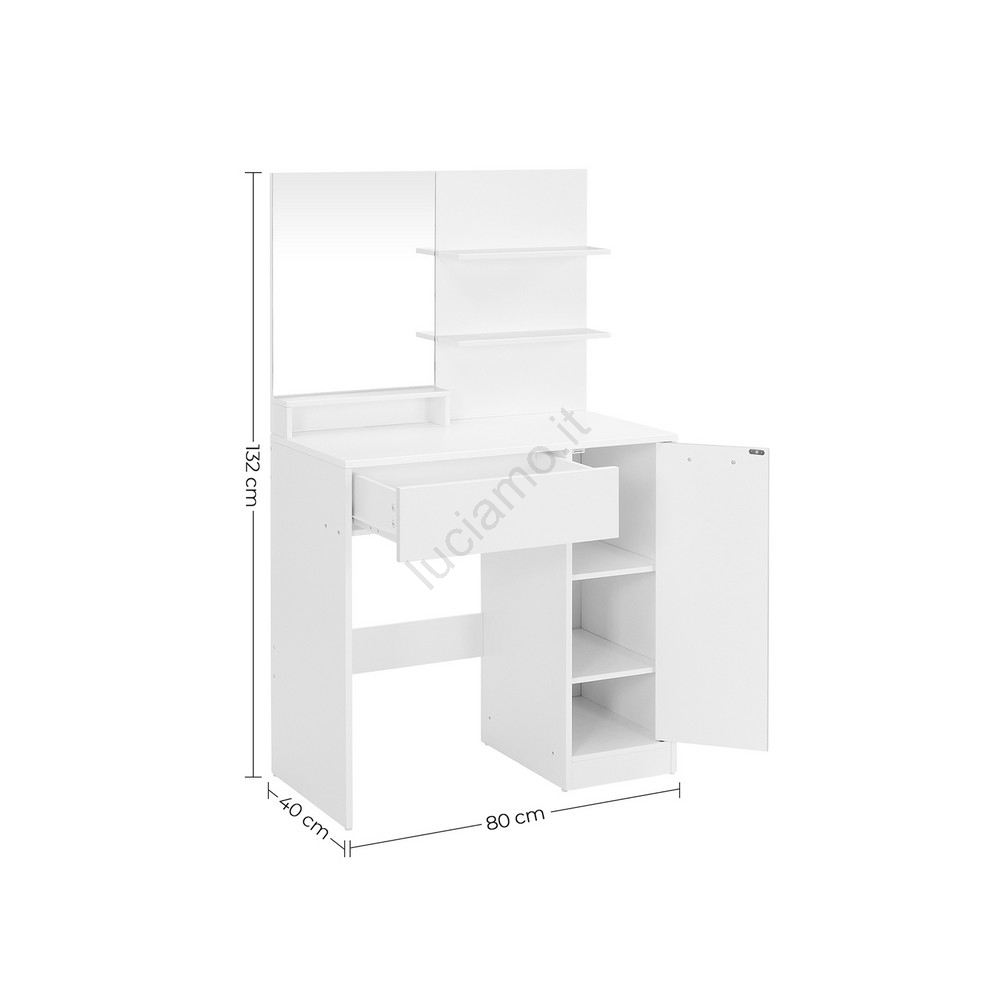 • Cassetto, anta e ripiani mantengono i tuoi cosmetici e il trucco sempre a portata di mano.