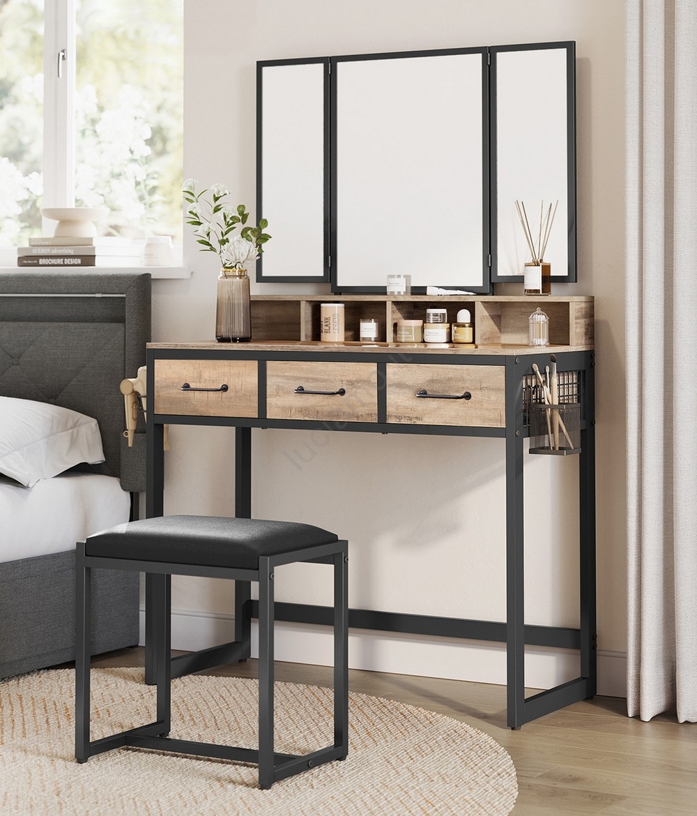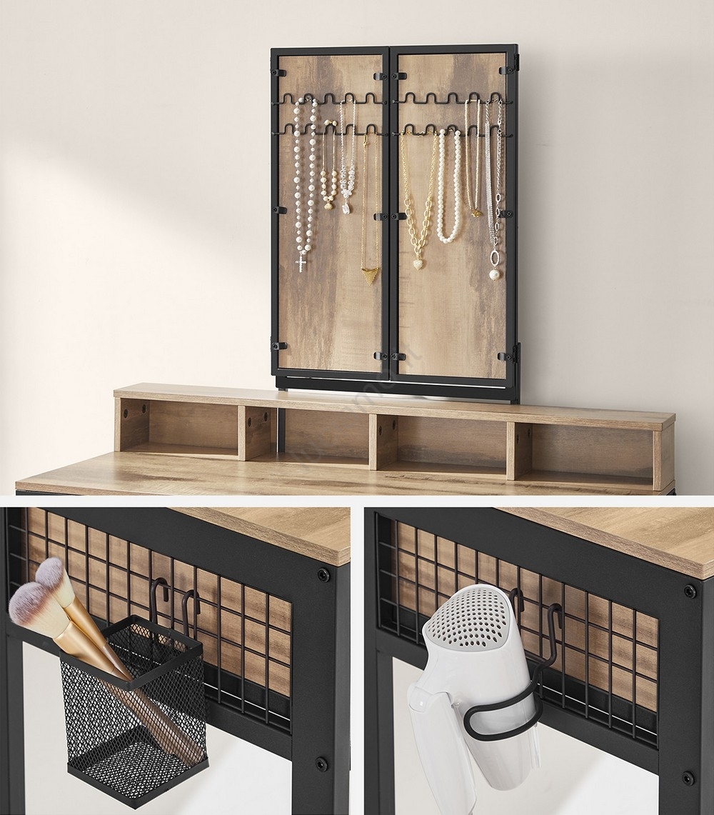 • Porta nella tua casa il fascino del legno e la robustezza del metallo con questa elegante toeletta dal design raffinato.