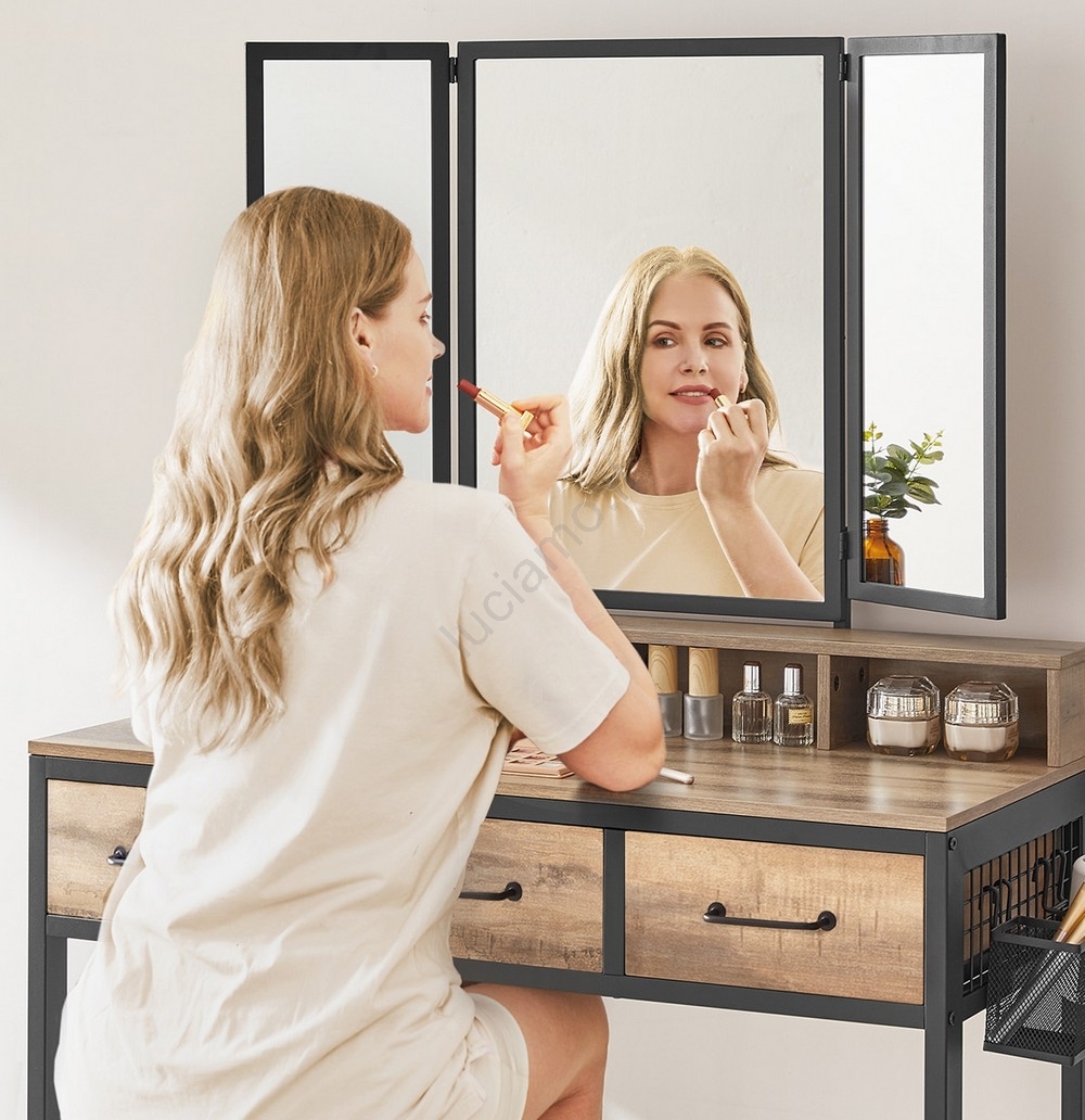 • 3 cassetti e una mensola sopra di essi terranno i tuoi cosmetici e il make-up sempre a portata di mano.