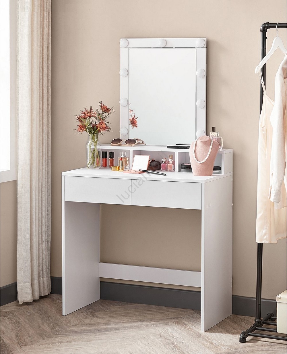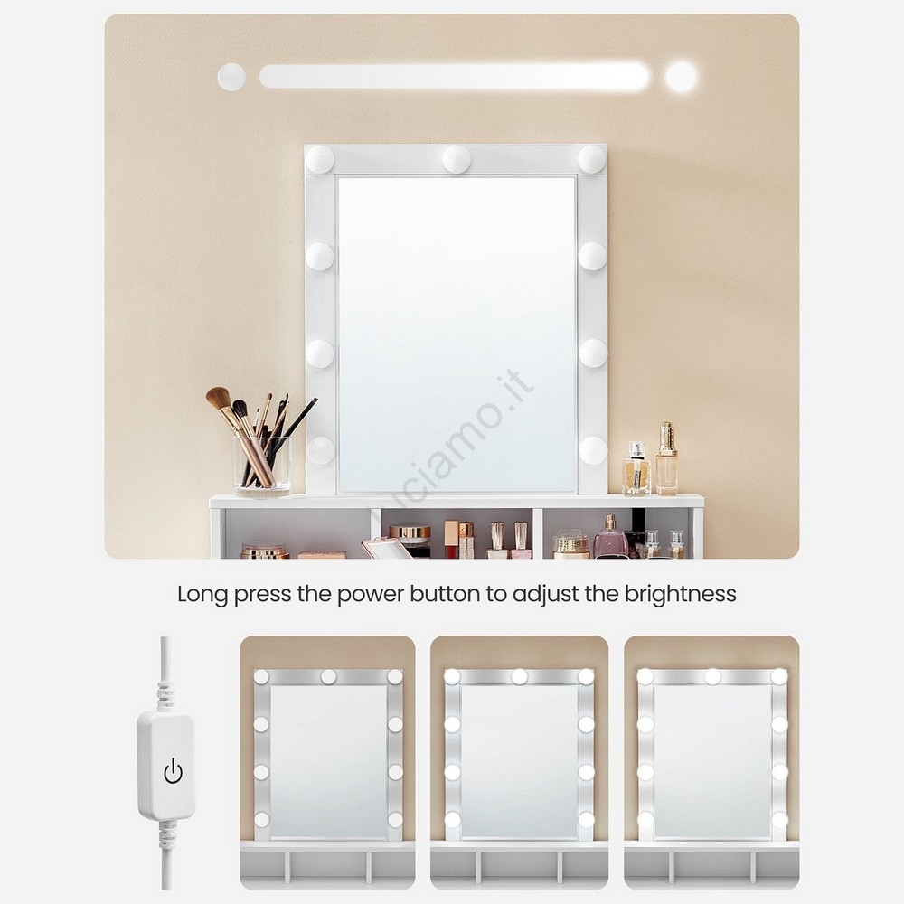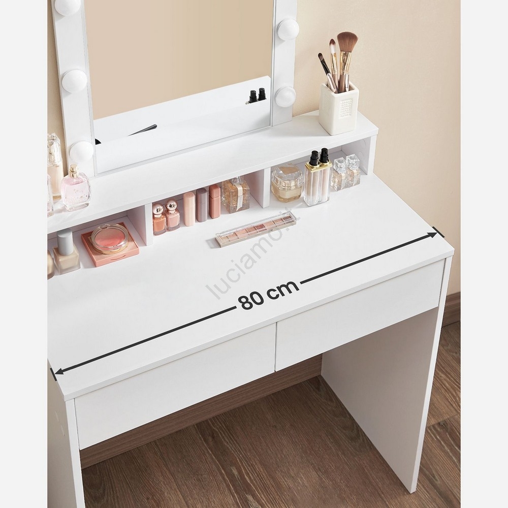 • 2 cassetti e ripiani mantengono i tuoi cosmetici e il make-up sempre a portata di mano.