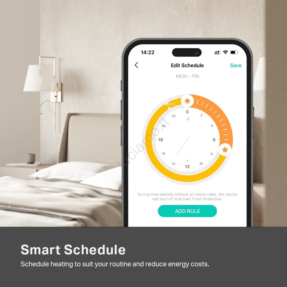 • Il termostato è progettato come regolatore di temperatura ambiente per una gestione semplice di riscaldamento e climatizzazione.