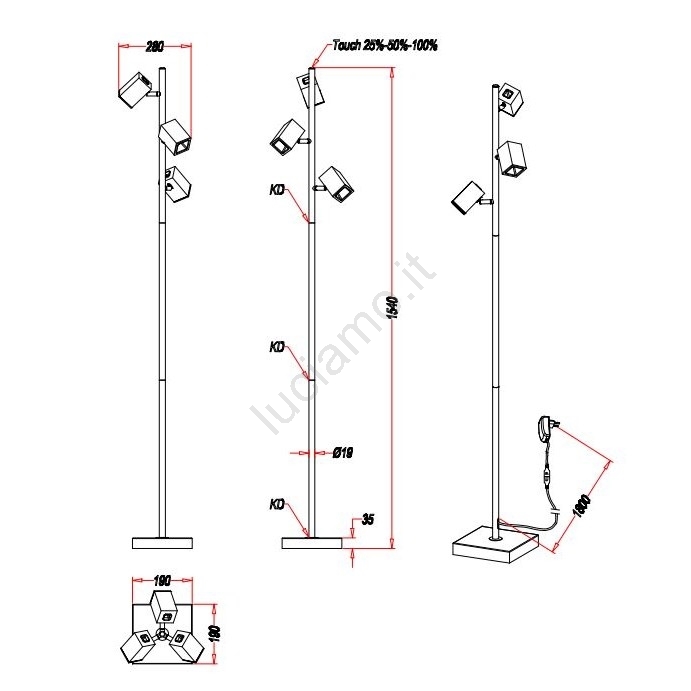 Trio - LED Dimmerabile touch lampada con piedistallo LAGOS 3xLED/4,7W/230V