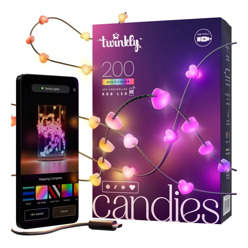 Twinkly - Catena luminosa LED RGB dimmerabile CANDIES 200 LED 14 m USB Wi-Fi