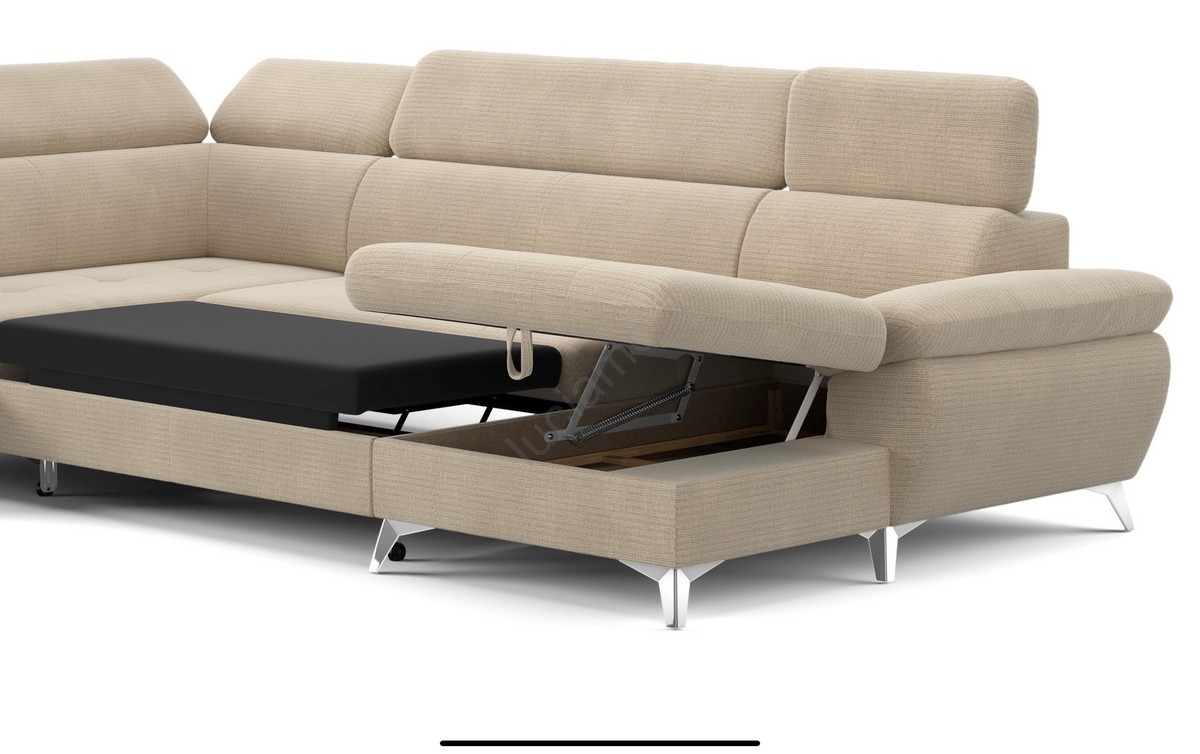 Divano angolare trasformabile a U CATANIA con contenitore, lato sinistro, beige