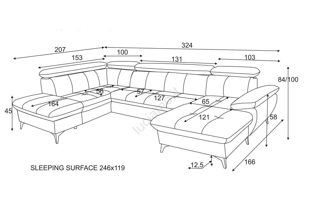 • Divano moderno a forma di U (angolo sinistro) è la scelta ideale per soggiorni spaziosi e di stile.