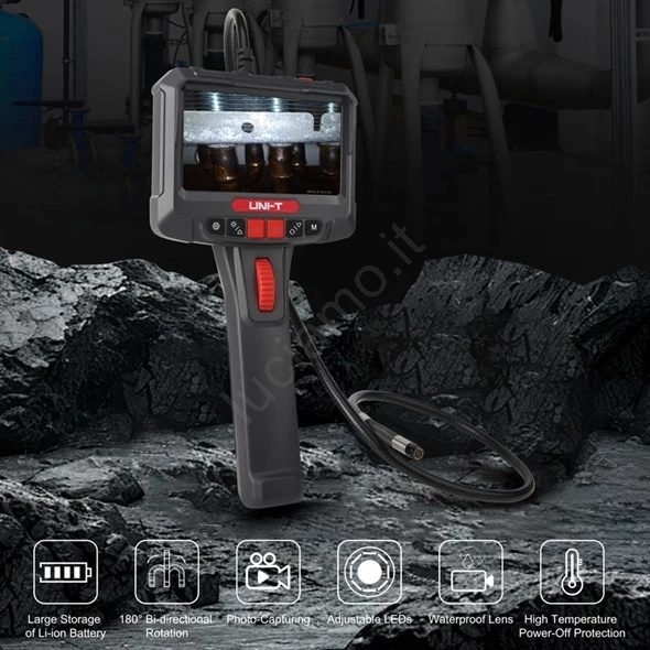 • Grazie alla combinazione di immagini precise, telecamera orientabile e funzioni pratiche, l'UT663B è lo strumento ideale per meccanici, tecnici, operatori di assistenza e ispettori edili.