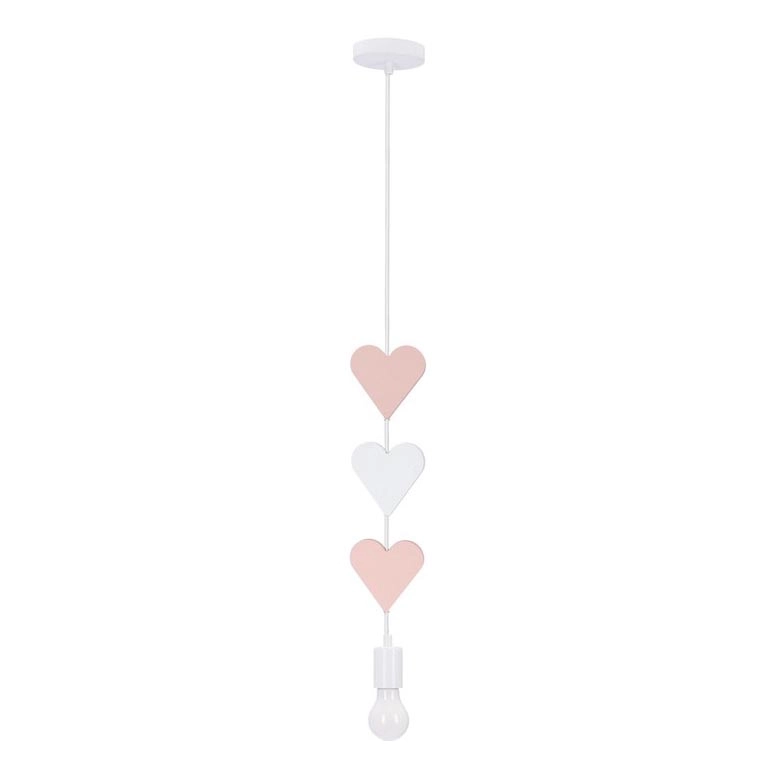 Lampadario a sospensione per bambini HEART 1xE27/20W/230V rosa/bianco