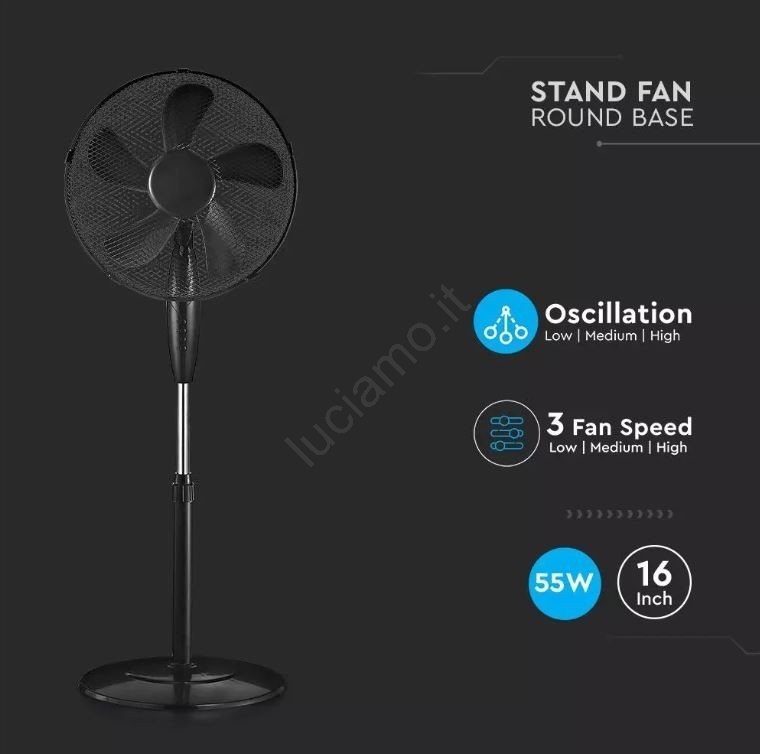 • Controllo dell'oscillazione tramite pulsanti posizionati sul ventilatore.