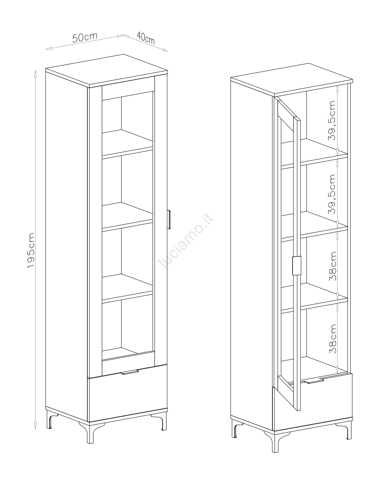 • Il mobile è realizzato in stile loft e si caratterizza per gambe e maniglie in metallo, che gli conferiscono un ulteriore tocco industriale.