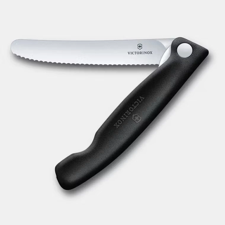 • È dotato di una lama pieghevole con filo seghettato, che si ripiega in modo sicuro nell'impugnatura per il trasporto e lo stoccaggio.