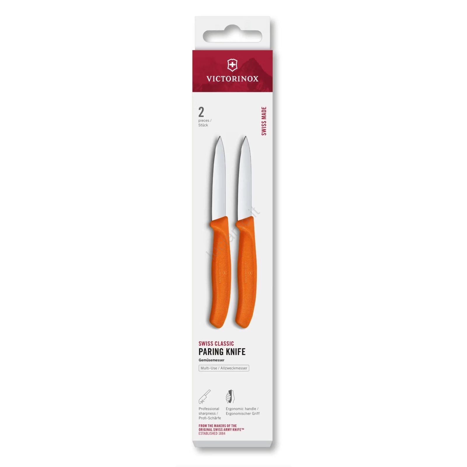 Victorinox - Set di coltelli da cucina per verdure SWISS CLASSIC 8 cm, 2 pezzi, arancione