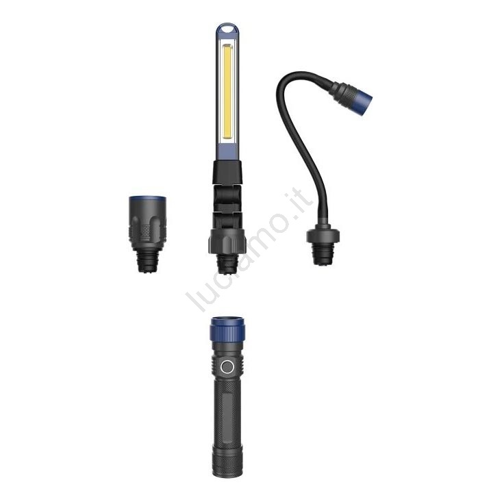 • Offre una luminosità di 380 lm e tre testine intercambiabili (standard, flessibile, a striscia LED).