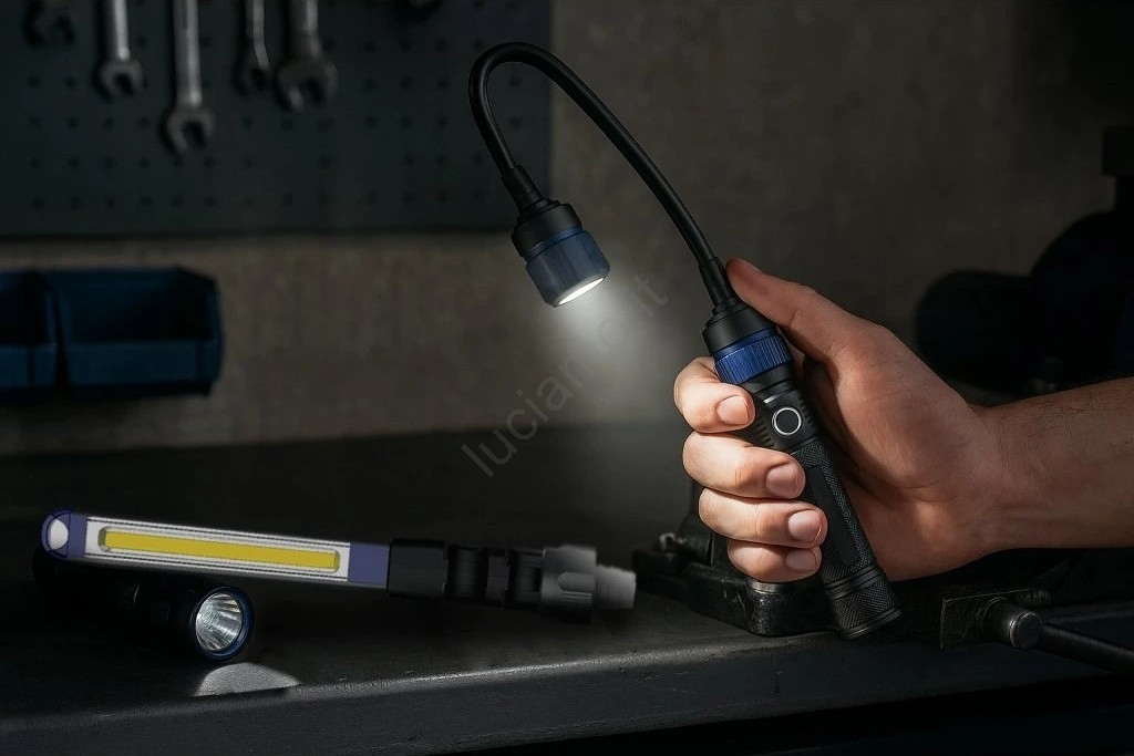 • La testina flessibile da 190 lm, orientabile per adattare la direzione della luce, consente di illuminare anche i punti meno accessibili.