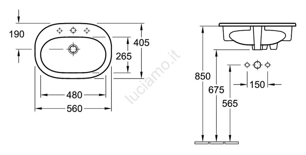 Villeroy & Boch 416156R1 - Lavabo da incasso O.NOVO 56x41 cm ceramica/bianco