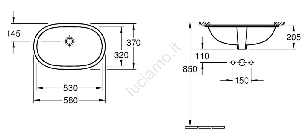 Villeroy & Boch 41625001 - Lavabo da incasso O.NOVO 53x32 cm ceramica/bianco