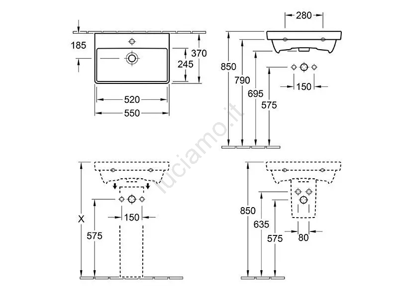 • Il miscelatore per lavabo e la piletta non sono inclusi nella confezione.