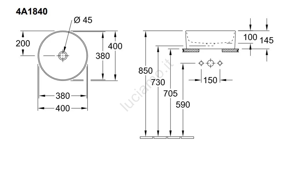 Villeroy & Boch 4A1840R1 - Lavabo da appoggio COLLARO Ø 40 cm ceramica/bianco