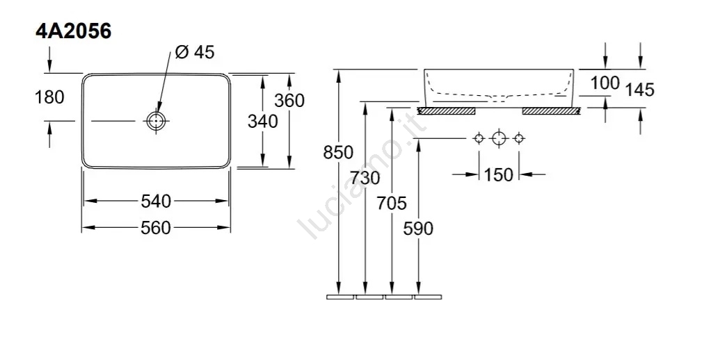 Villeroy & Boch 4A2056R1 - Lavabo da appoggio COLLARO 56x36 cm ceramica/bianco