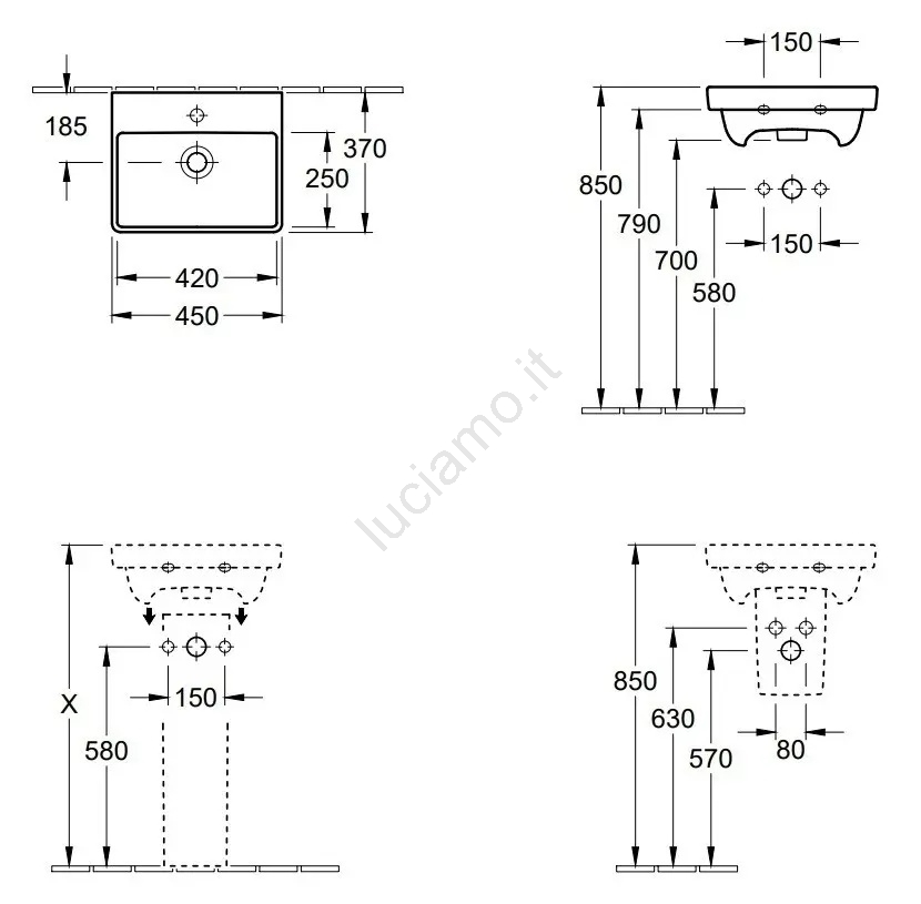 Villeroy & Boch 73584501 - Lavabo sospeso AVENTO 45x37 cm ceramica/bianco