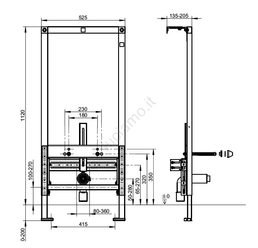 • Regolazione in altezza rispetto al livello del pavimento: 0 - 200 mm.