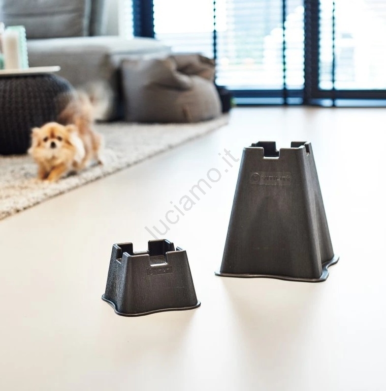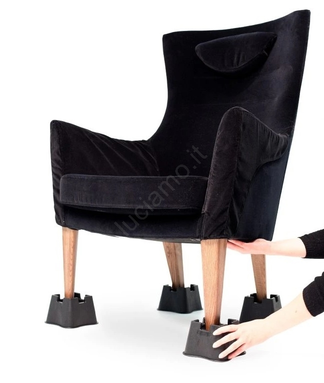 • Viene fornito in set da quattro pezzi da posizionare sotto i piedini del letto.