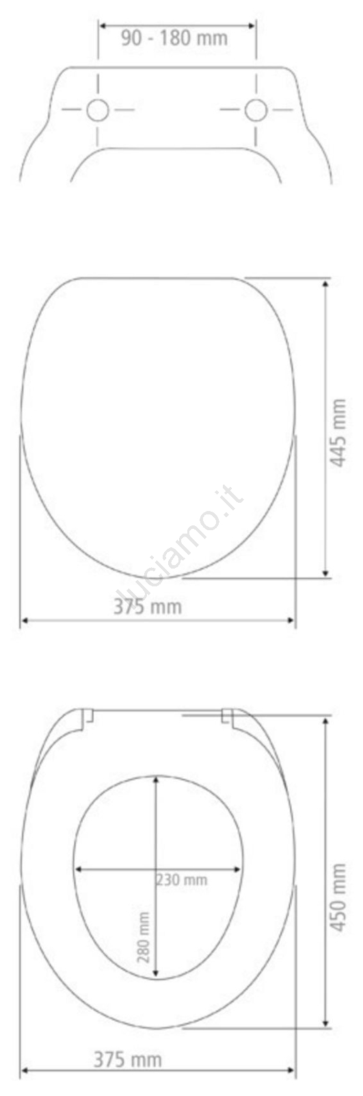 • Classica forma ovale per ampia compatibilità con WC comuni.