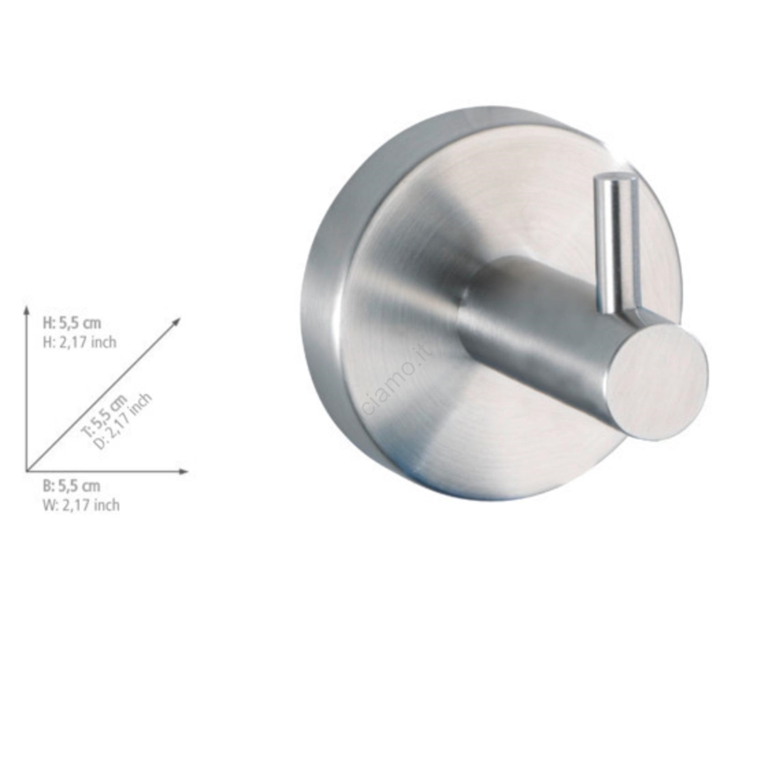 WENKO 19621100 - Gancio BOSIO MATT 5,5x5,5 cm acciaio inox/argento