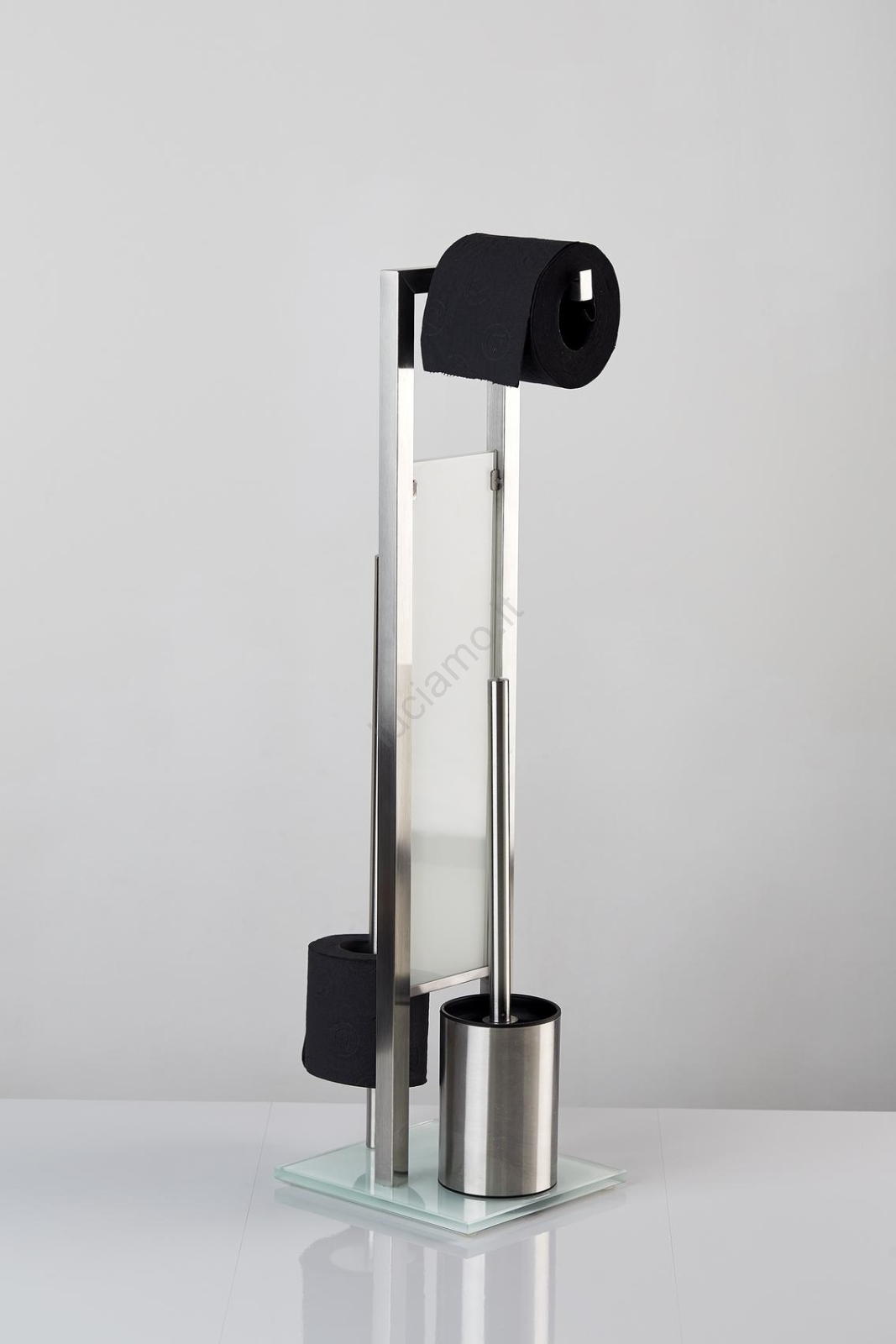 • Pratica combinazione 3-in-1 – porta scopino per WC, porta rotolo per carta igienica e contenitore per rotoli di ricambio.