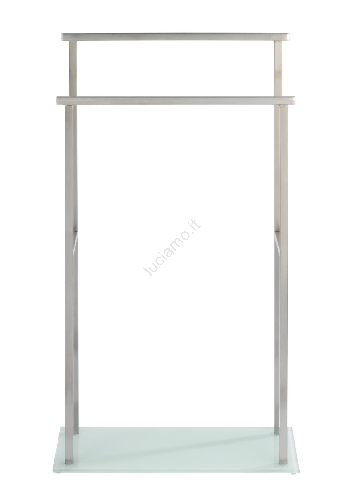 • Due supporti paralleli con altezze differenziate per asciugamani e indumenti.