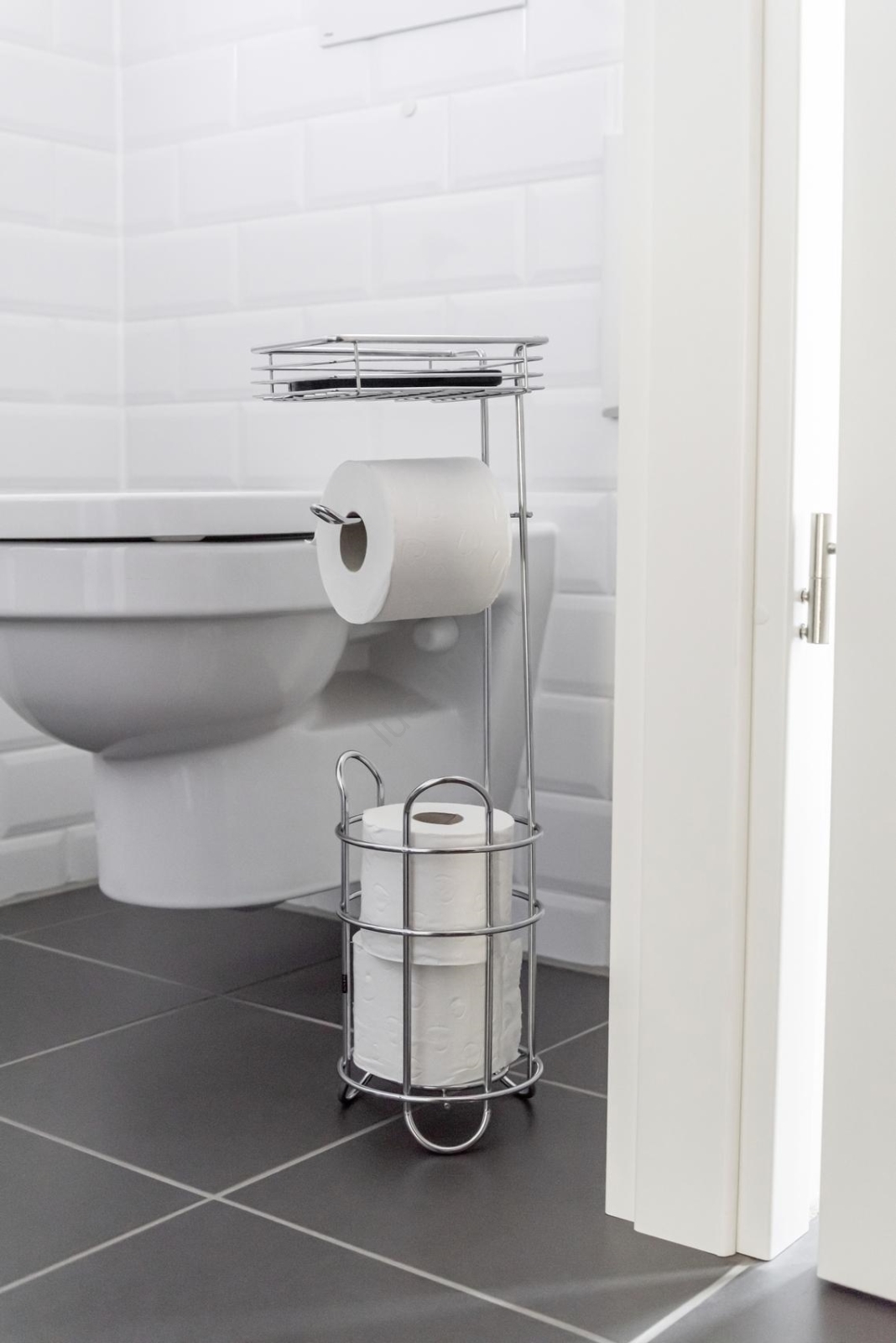 • Pratico porta rotolo 3 in 1 con vano portaoggetti.