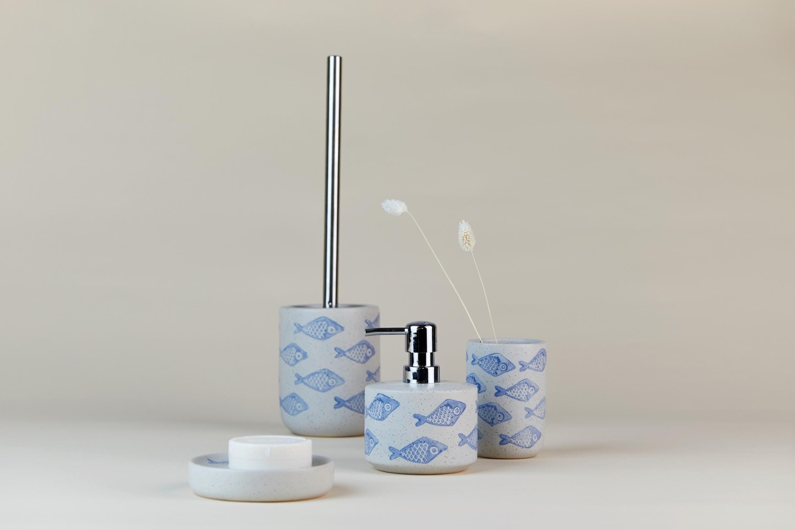 • Elegante dispenser di sapone in ceramica della serie Aquamarin del marchio WENKO.