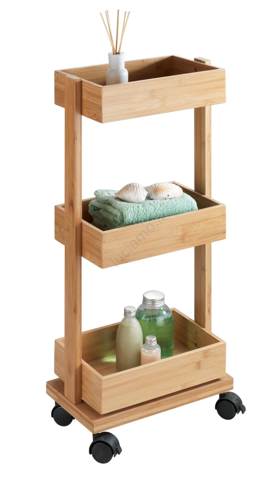 • Elegante scaffale contenitore su ruote in bambù naturale.