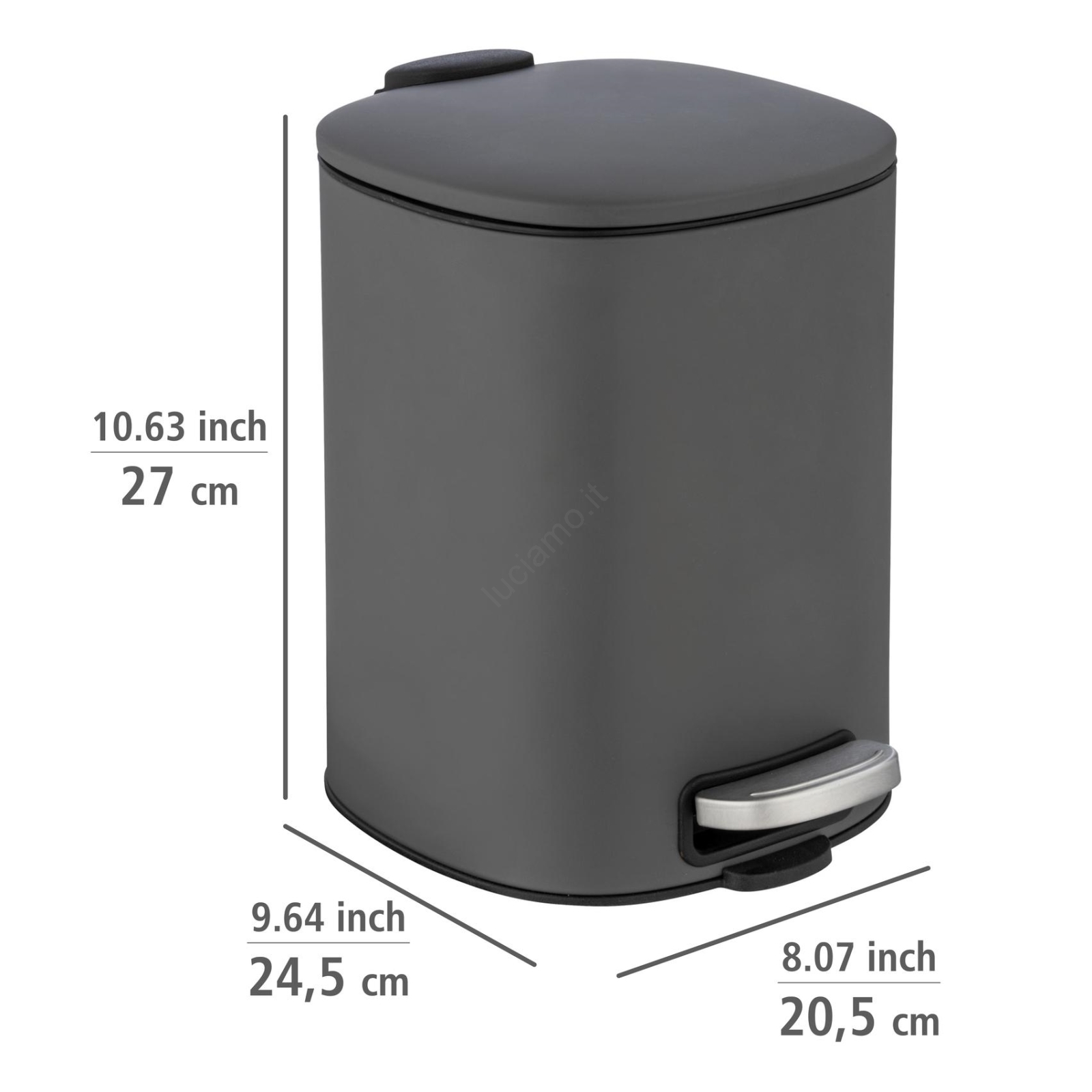 • Dimensioni compatte 20,5 × 27 × 24,5 cm, ideali per il bagno o il WC.