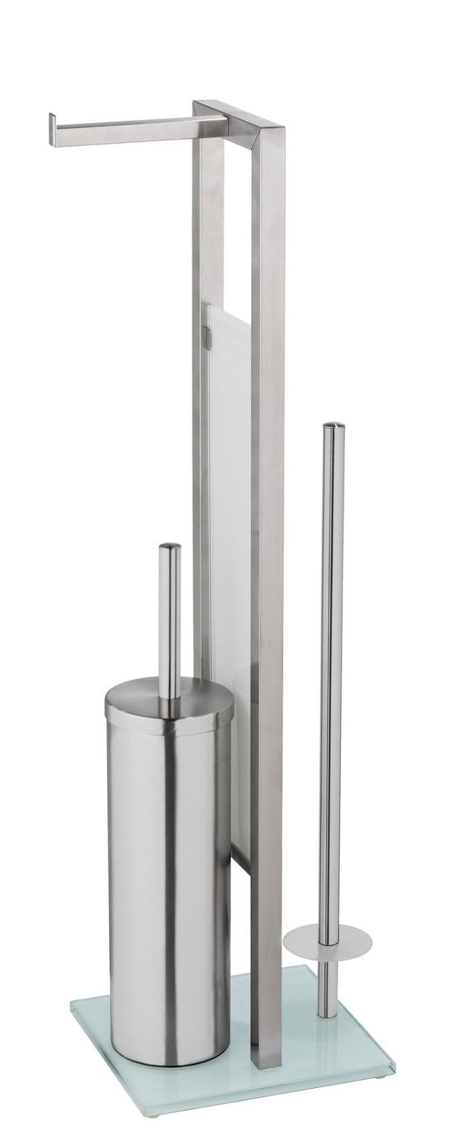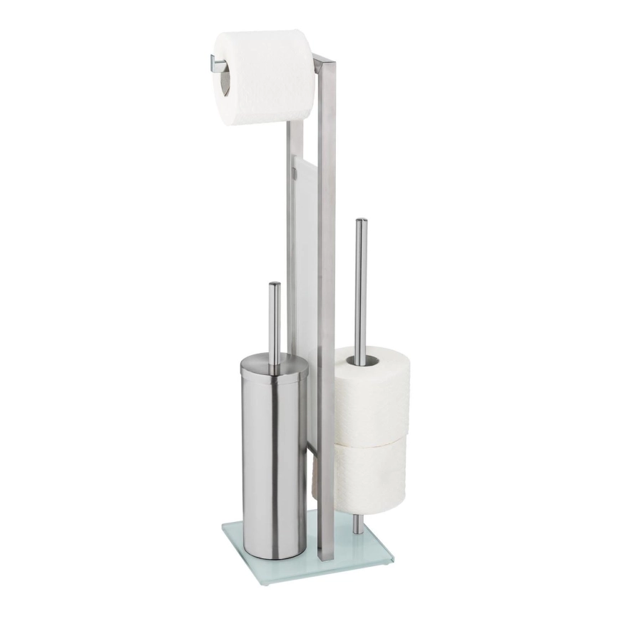 • Pratico set 3 in 1: scopino WC, portarotolo per carta igienica e vano per rotoli di ricambio.