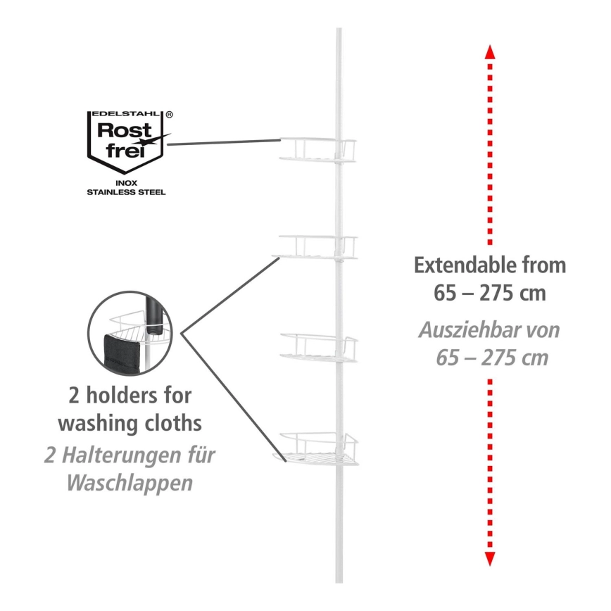• Mensola angolare telescopica in acciaio inossidabile con finitura bianco opaco.