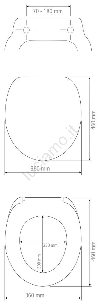 • Dimensioni del sedile: 36 × 46 cm, foro interno 23 × 30 cm.